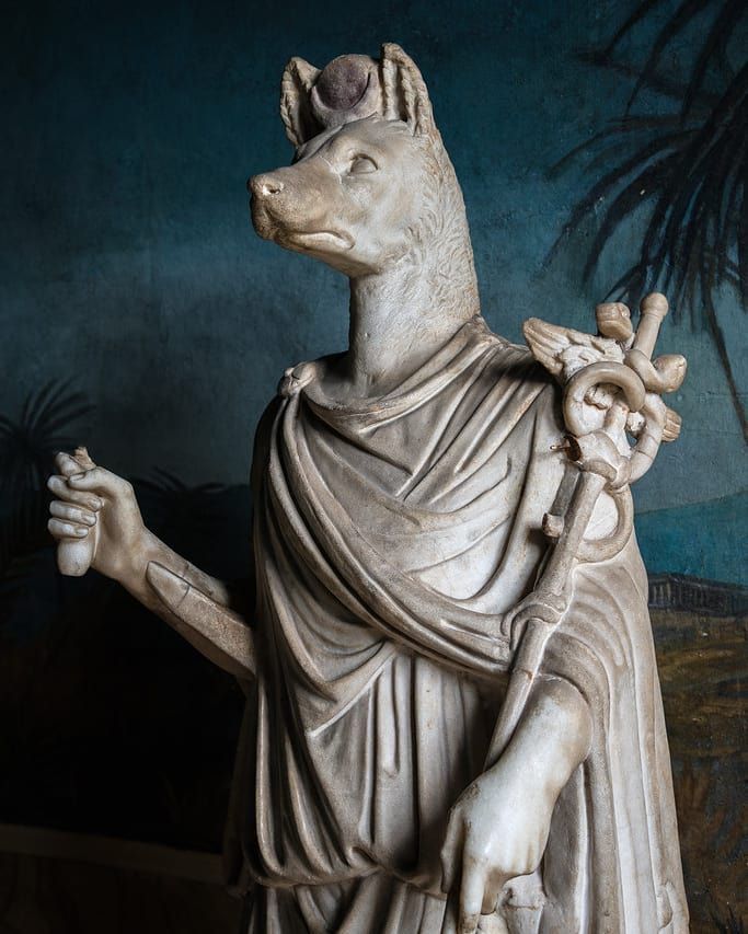 These dogs were most likely produced in dynastic times. The same applies to four (one of which is smoothed) very well executed figures which can be identified as hounds. Most of them were found in the context of the Old Kingdom watch-post huts, being thus securely dated (Krzyzaniak & Kroeper 1990: 78, fig. 8). The best preserved scene shows two dogs apparently chasing a warthog. Ancient Egyptian gods Hapi and Anubis were depicted in the cynocephaly form, with a human body. They are called by the Indians Kalystrii, in Greek Kynocephaloi (Cynocephali) (Dog-Headed).