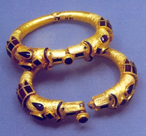 Bakodpusztai lelet. Kalocsa térségéből származó "hun kori" karperec. Hasonló példányokat találtak ugyan Kiev és a Krim környékén, de ez nem zárja ki, hogy pl a gepida központban, Apahidán készítették őket. A feltételezett temetkezési idő alapján a szkír királyi család nőtagjáé volt a karperec.